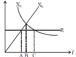 The figure shows variation of R, XL and XC with frequency f in a series L, C, R circuit. Then for