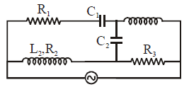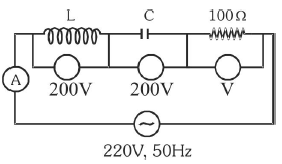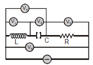 In the adjoining A.C. circuit the voltmeter whose reading will be zero at resonance is :–