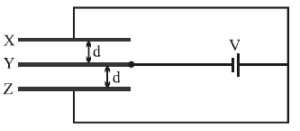 Question 10: A parallel plate capacitor has capacitance C. If charge Q is given to one plate and another plate is kept uncharged. The potential difference between the plates is
