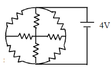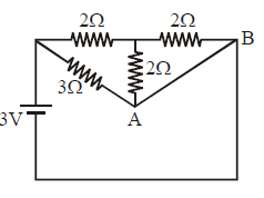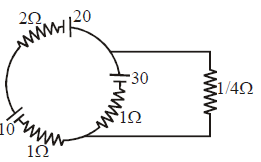 In the following circuit diagram, the current flowing through resistor of 1/4Ω is :