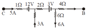 Potential difference between C and B /[\left( V_{C}-V_{B} \right)/] in the circuit is :