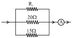 In the given circuit the current flowing through the resistance 20 ohms is 0.3 ampere while the ammeter reads 0.8 ampere. What is the value of R1?