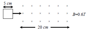 A square loop of side 5 cm enters a magnetic field with 1 cms–1. The front edge enters the