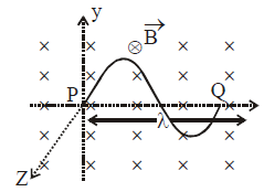 A wire forming one cycle of sine curve is moved in x-y plane with velocity