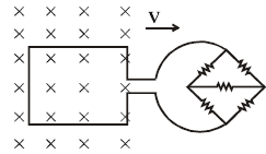 connected to a network of five resistors each of value 3 Ω. If a steady current of 1 mA flows in