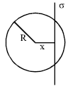 Question 10: An infinite, uniformly charged sheet with surface charge density σ cuts through a spherical Gaussian surface of radius R at a distance x from its center, as shown in the figure. The electric flux Φ through the Gaussian surface is :