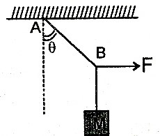 A mass M is suspended by a rope from a rigid support at A as shown in figure. Another rope is tied at the end B, and it is pulled horizontally with a force F. If the rope AB makes an angle θ with the vertical in equilibrium, then the tension in the string AB is: