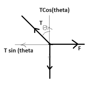 For Equilibrium, T Cos θ = Mg and T Sin θ = F ;