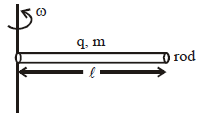 In the given diagram a rod is rotating with angular velocity ω. Mass of this rod is m, charge q, and length is l then find out magnetic moment of this rod :