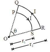A wire loop is formed by joining two sections of radii r1 and r2 subtending an angle θ at O. The