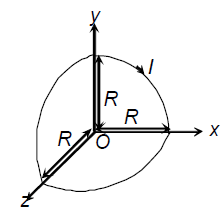 and each having its centre at the origin of coordinate system. If current I is flowing thriugh
