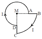 loop are as shown in the figure. The magnetic field at the centre of the loop is