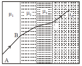 A ray of light passes through four transparent media with refractive indices μ1, μ2, μ3 and μ4 as shown in the given figure.