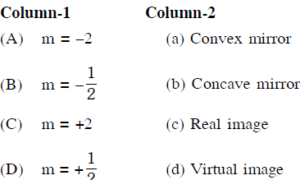 Match the corresponding entries of column-1 with coloumn-2 (Where m is the magnification produced by the mirror) :-