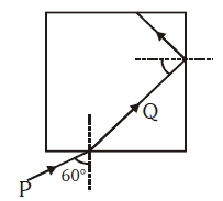 As shown in figure light P enters to slab at an angle 60° with normal and inside slab Q makes total internal reflection. Find minimum refractive index