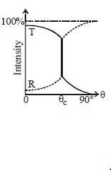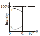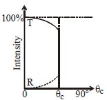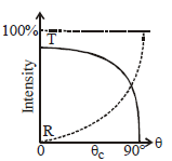 A light ray travelling in a glass medium is incident on glass-air interface at an angle of incidence q. The reflected (R) and transmitted (T) intensities,