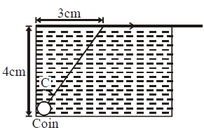 A small coin is resting on the bottom of a beaker filled with liquid. A ray of light from the coin travels upto the surface of the liquid and moves along its surface. How fast is the light travelling in the liquid ?