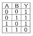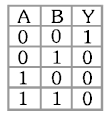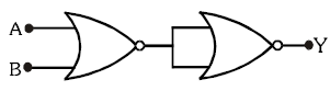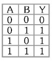 In the following circuit, the output Y for all possible inputs A and B is expressed by the truth