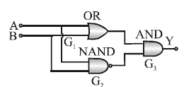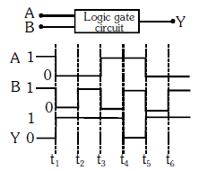 The following figure shows a logic gate circuit with two inputs A and B and the output Y. The