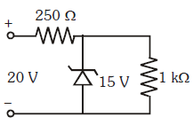 A zener diode, having breakdown voltage equal to 15 V, is used in a voltage regulator circuit shown in figure. The current through the zener diode is: