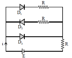 In the following circuit of PN junction diodes D1, D2, D3 are ideal then i is :-