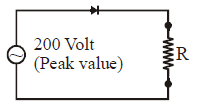 A sinusoidal voltage of peak value 200 volt is connected to a diode and resistor R in the
