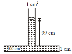 A tube 1 cm2 in cross-section is attached to the top of a vessel 1 cm high and of cross-section 100 cm2. Water is poured into the system filling it to a depth of 100 cm above the bottom of the vessel as shown in figure. Take g = 10 ms–2. Now,