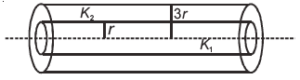 Two coaxial cylinders of radius r and 3r are made of material of thermal conductivity K1 and K2 respectively. The equivalent thermal conductivity of